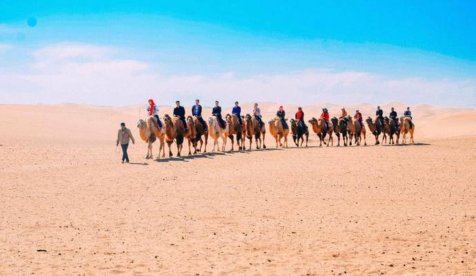 位于内蒙古自治区阿拉善左旗西南部和甘肃省中部边境,是电影《刺陵》的取景地。腾格里虽然不是最大的沙漠,但其沙峰壮阔宏大,沙粒细微软滑,颜色金黄闪亮,别具特色。行至大漠深处,除了金色的沙海,腾格里会给游客带来一连串的塞上奇景。在腾格里深处有许多湖泊,远远望去,湖边堆堆盐囱恰似冰雪,湖面泛着银光,犹如沙海冰川。还可以骑骆驼在沙漠上走走,照张相片,领略一下沙漠行旅的味道。