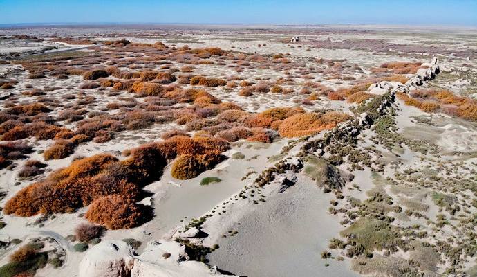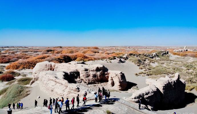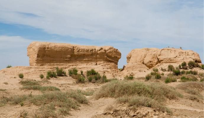 锁阳城位于瓜州县城东南约70km的戈壁滩上,始建于汉代,是古代瓜州的郡城遗址,也是丝绸之路咽喉上的一大古城。城东北方向有一座元代寺院,大塔高十余米,千座小塔整齐地排列于一条线上。锁阳城之名缘于清代民间,因城周围有许多味美甘甜的锁阳,后人因物命名为锁阳城。