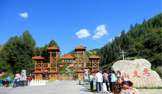 焉支山,也叫做“胭脂山”,位于山丹县城东南45公里处,据说是因为山上生长有一种叫红蓝草的植物,可以做成红色的染料,调以油脂后既可做胭脂使用,故名胭脂山,被评为省级森林公园。隋炀帝曾在此诏见西域27国使臣,举办“万国博览会”。 焉支山坐落在河西走廊的峰腰地带,自古有“甘凉咽喉”之称。山上林海松涛,碧波无际,山下沟壑纵横,清泉淙淙。腹地,獐鹿、岩羊等野生动物出没其间,峡谷两侧崇山峭立,奇石岩岩。秋日,各种野花竞相怒放,争奇斗艳。秋夏之际,这里气候凉爽湿润,景色秀丽迷人,素有“小黄山”之称。焉支山上原始森林覆盖,主要为松柏一类,风起时松涛阵阵,使人有出尘之意。山上尚有玉皇观及钟山寺两处人文建筑,其中玉皇观为山丹县道教协会所在地。山下有一峡谷被称为焉支峡,峡内有溪水一条。焉支山的主峰是毛帽山,海拔最高处有3978m,是仅次于祁连山的一座独立山脉。