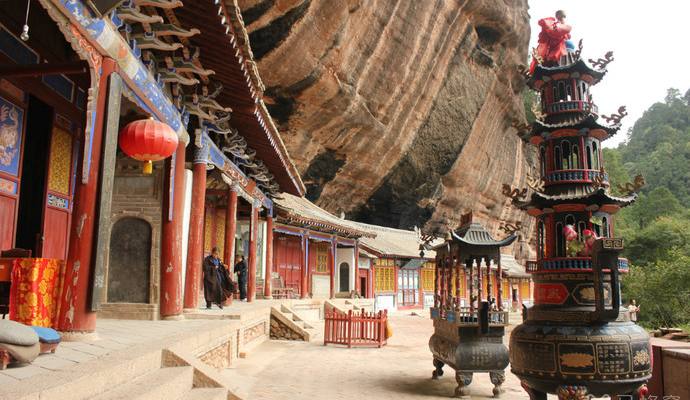 仙人崖距麦积山石窟15公里,因传说常有仙人隐居于此修行而得名,由三崖、五峰、六寺所组成。这里现存的寺宇是经唐、宋、明、清等朝代建筑和重新修缮的,部分泥塑为北魏晚期作品。长期以来,这里是释、道、儒三家共存的风景胜地。“仙人送灯”为秦州十景之一。古时,南崖脚下,依崖修建了燃灯阁,是仙人崖的主建筑之一。每当夏秋深夜,天然磷光与阁中的油灯和烛光浮动辉映,人传是神仙携灯往来,故有“仙人送灯”之说。