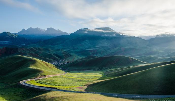 祁连山脉的一支,海拔4300m,属丹霞地貌,紧靠八宝河,并与藏区神山牛心山隔河相望。6-8月时草原翠绿欲滴,山体裸露处都是赤红的砂岩,与碧绿的草原层叠交错,景色壮美。山脉两侧的林海、油菜花、村庄、县城,景色层次感很强,是摄影师的最爱。