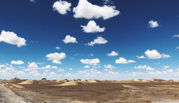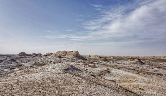 荒无人烟,看似是土堆其实是岩石,据说当风呼呼吹过的时候,会发出非常可怕的鬼哭狼嚎的声音,这也是魔鬼城名称的来历。这种地貌在青海,甘肃这边的无人区很多,几个比较著名的地方被开发成景区,而其实,很多公路边上的无人区都可以玩耍了,我们到的这一片就是公路旁的,无需门票,车停在路边,就可以进去奔跑了,如果是越野车,还是可以再向里开进一些,爬上岩石堆,眼前是一望无际的荒漠,苍茫,无边无际,在西北地区,你随时会有这种感觉,这里的主宰是自然,荒凉,壮阔,天,地,沙漠,你。
