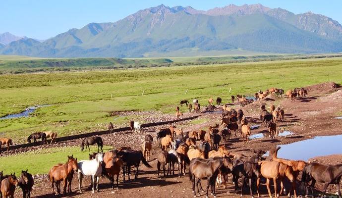 马场地势平坦,水草丰茂,夏季绿草如茵,冬季一片金黄,是马匹繁衍、生长的理想场所。 早在三千多年前,这里就已养马。自西汉以来,这里以当地蒙古马为基础,又引进了各种西域良马,杂交培育出的山丹马驰名天下,这里遂成为历代皇家军马养殖基地,经久不哀。